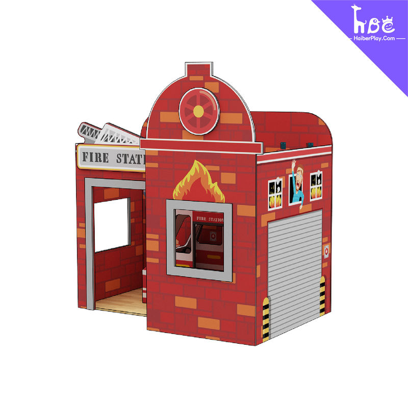 Διαδραστικό εκπαιδευτικό σετ παιχνιδιού σχεδιασμένο για εσωτερικές παιδικές χαρές, που επιτρέπει σε παιδιά ηλικίας 3+ να βιώσουν ρόλους πυροσβεστών και να μάθουν γνώσεις για την ασφάλεια από πυρκαγιές.